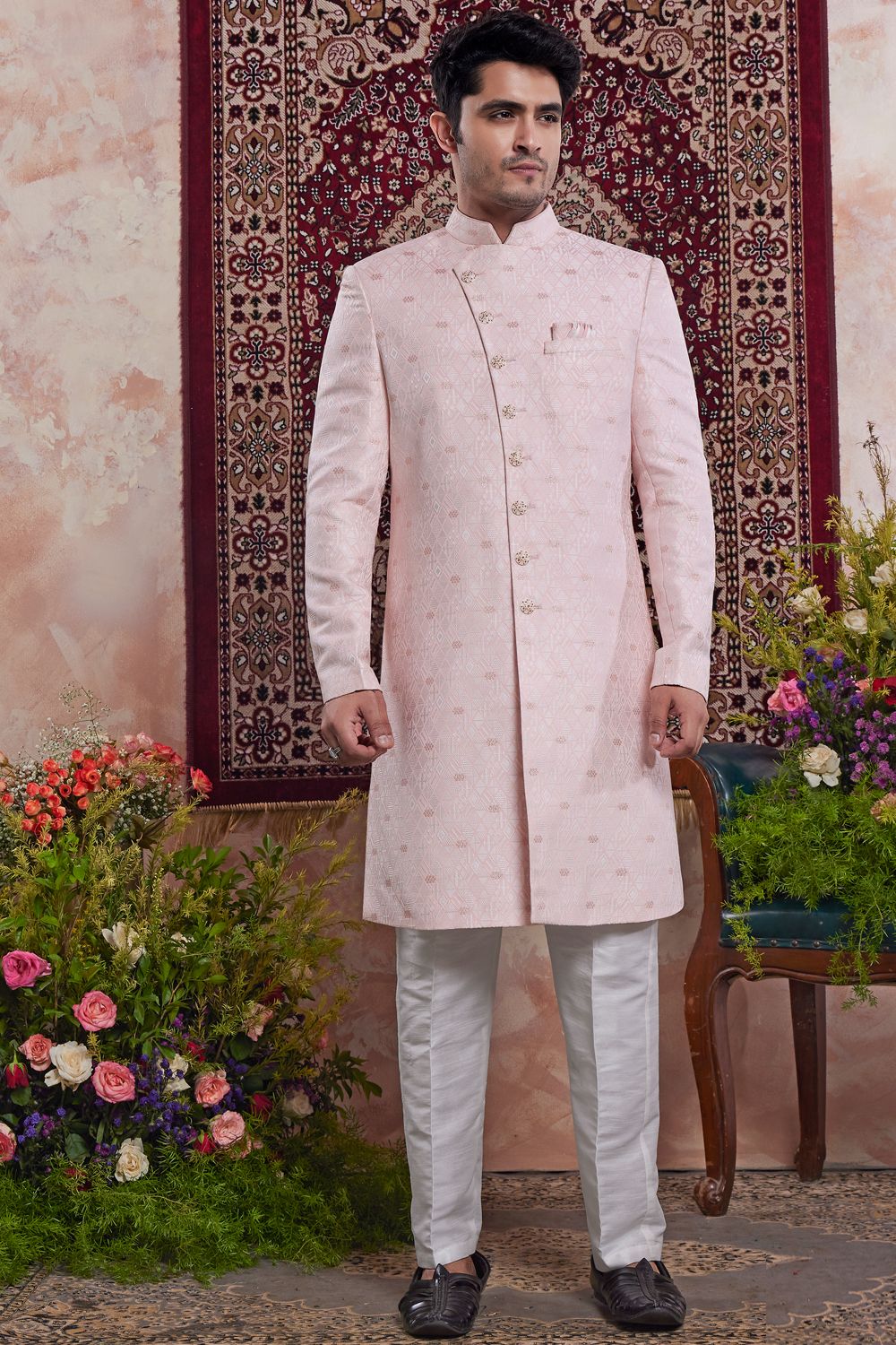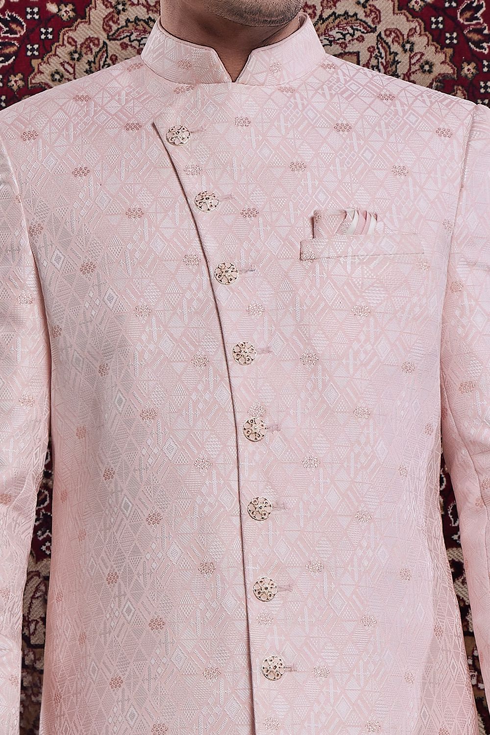 Pink Banarasi Jaquard Mens Indo Western (NMK-8557)