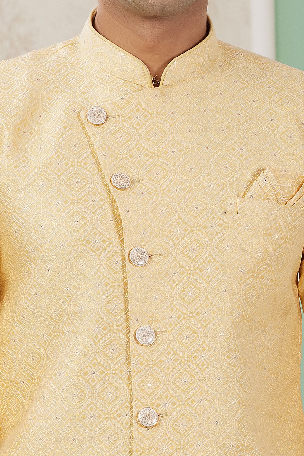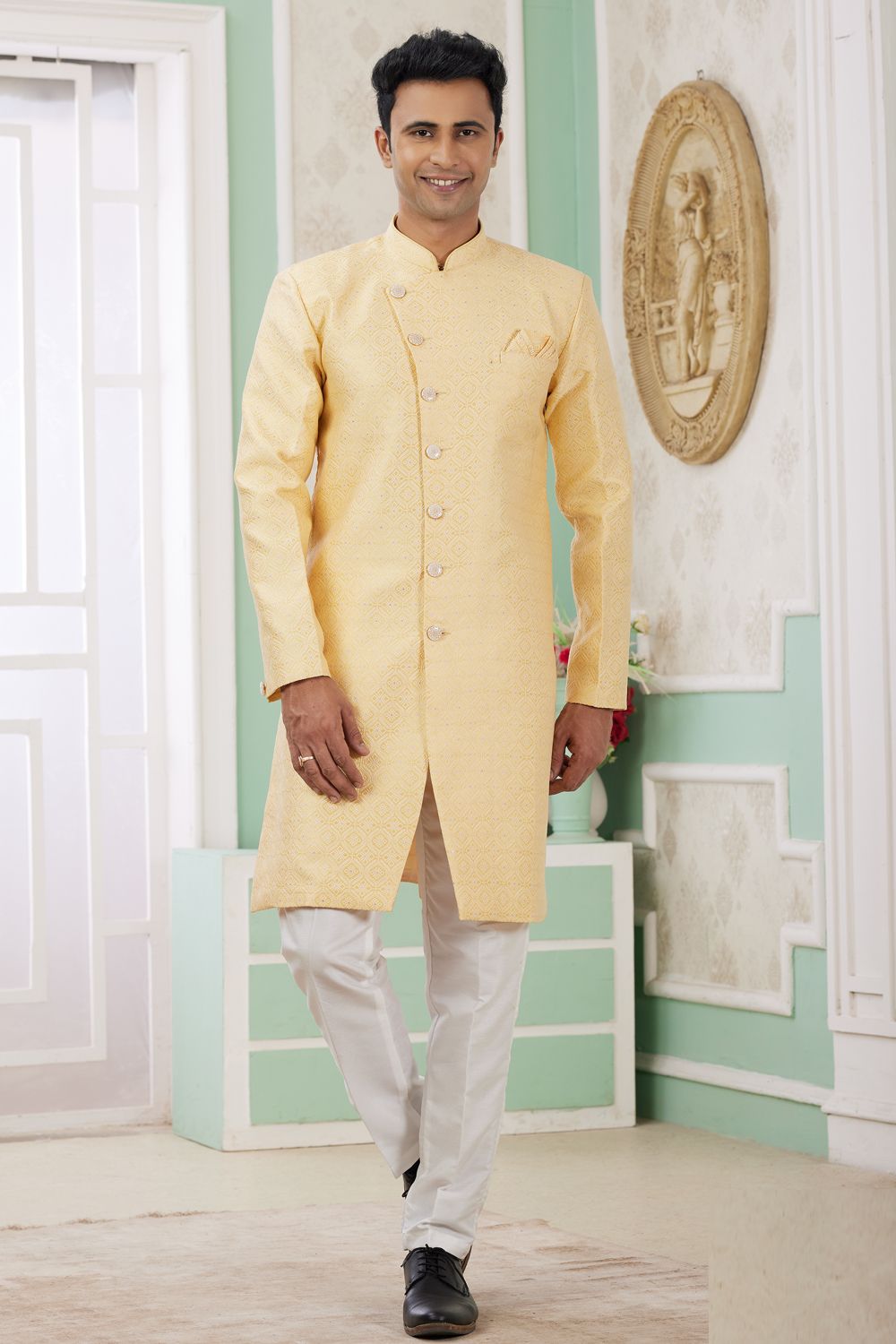 Yellow Banarasi Jaquard Mens Indo Western (NMK-8589)