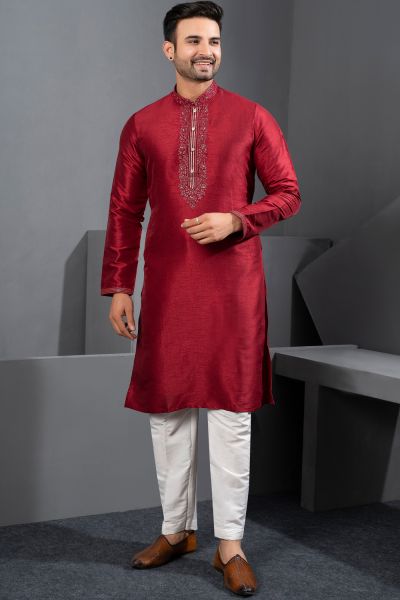 Maroon Banglori Silk Kurta Pajama (NMK-8735)