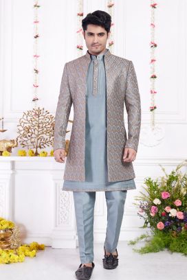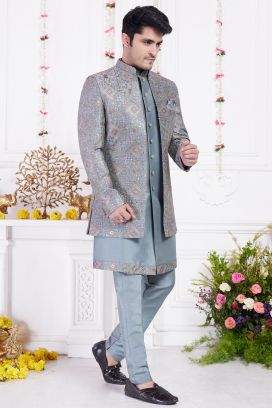 We, at Nihal Fashions, offer knee-length coats for any fashionable soul on the hunt for male’s Indian outfits. The exquisite designs capture the stylish essence of Indo-western wear.