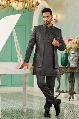 We, at Nihal Fashions, offer knee-length coats for any fashionable soul on the hunt for male’s Indian outfits. The exquisite designs capture the stylish essence of Indo-western wear.