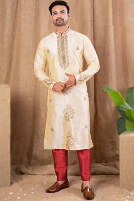 Art dupion infuses a touch of elegance to Indian men's wear, specifically being a ‘match made in heaven’ for kurtas. The hypnotic sheen and the textured weave of art dupion lend the garments a sophisticated finish, making them ideal for formal occasions like weddings, festivals and get-togethers.