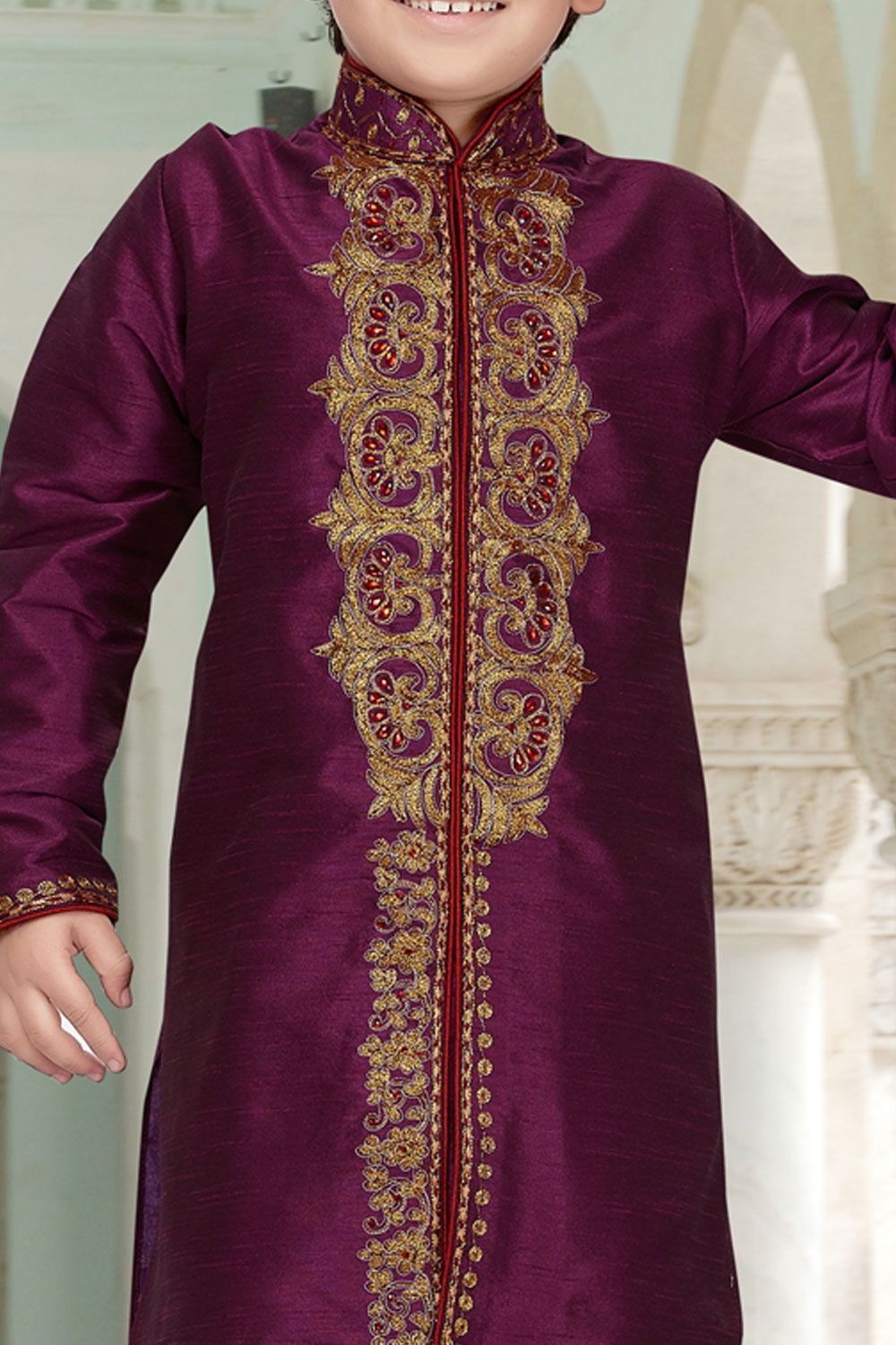 Wine Art Dupion Kids Kurta Pajama (NKK-535)