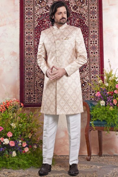 Beige Banarasi Jaquard Indo Western (NMK-8547)