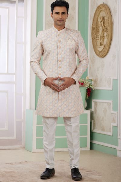Beige Banarasi Jaquard Indo Western (NMK-8587)