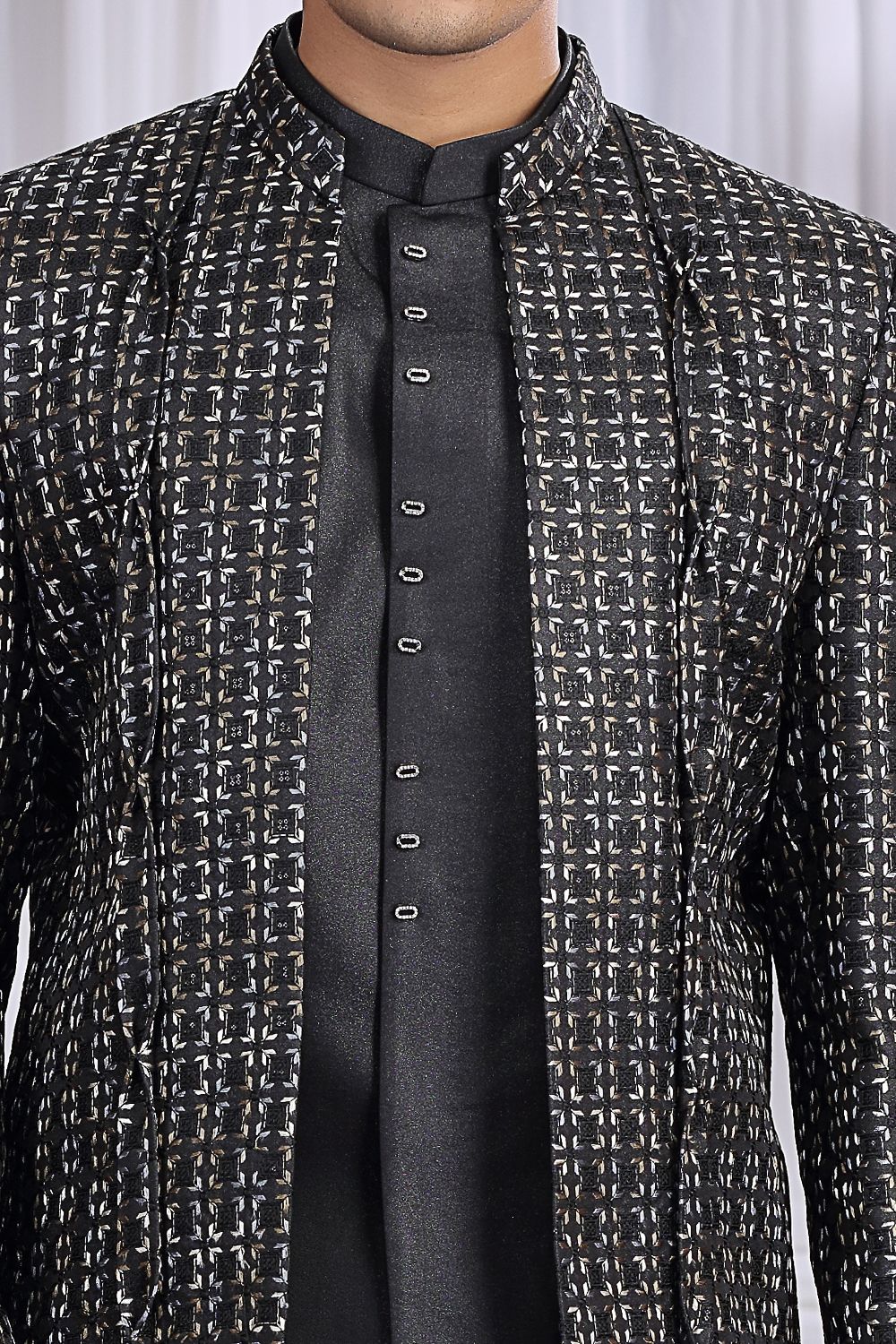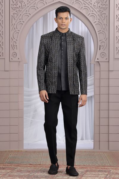 Black Art Silk 3 piece Jacket Jodhpuri is designed with computer thread work jacket. Comes with a bottom. Actual product colors, patterns and designs may slightly vary.
