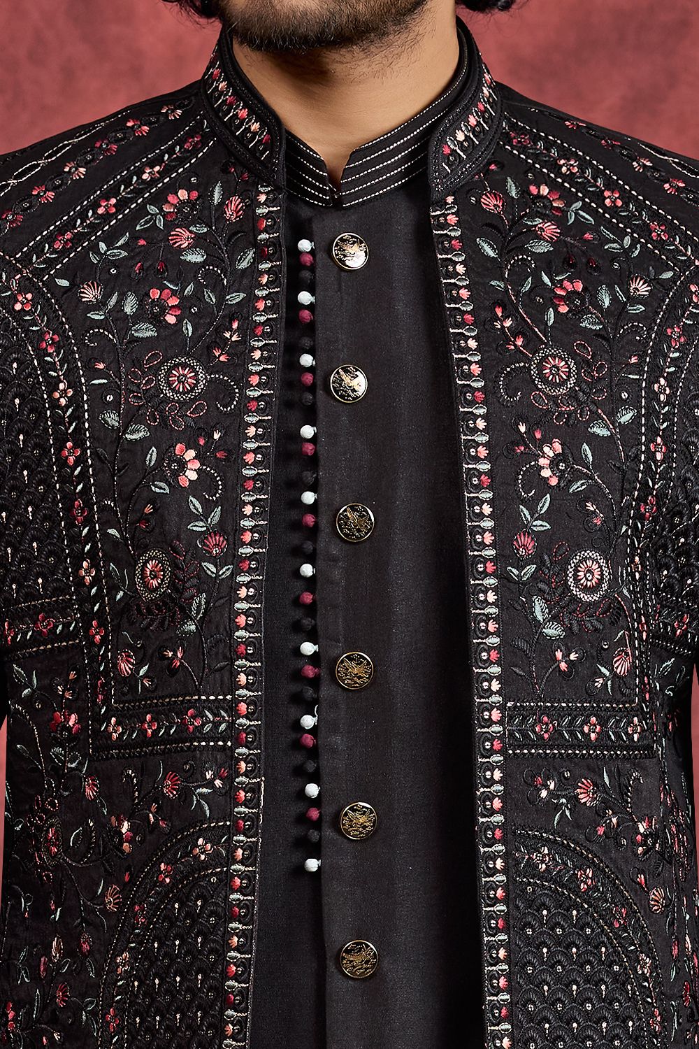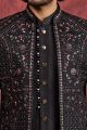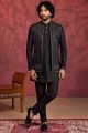 Black Silk 3 piece Long Jacket Indo Western (NMK-8692)