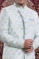 Blue Banarasi Jaquard Indo Western for Men (NMK-8561)