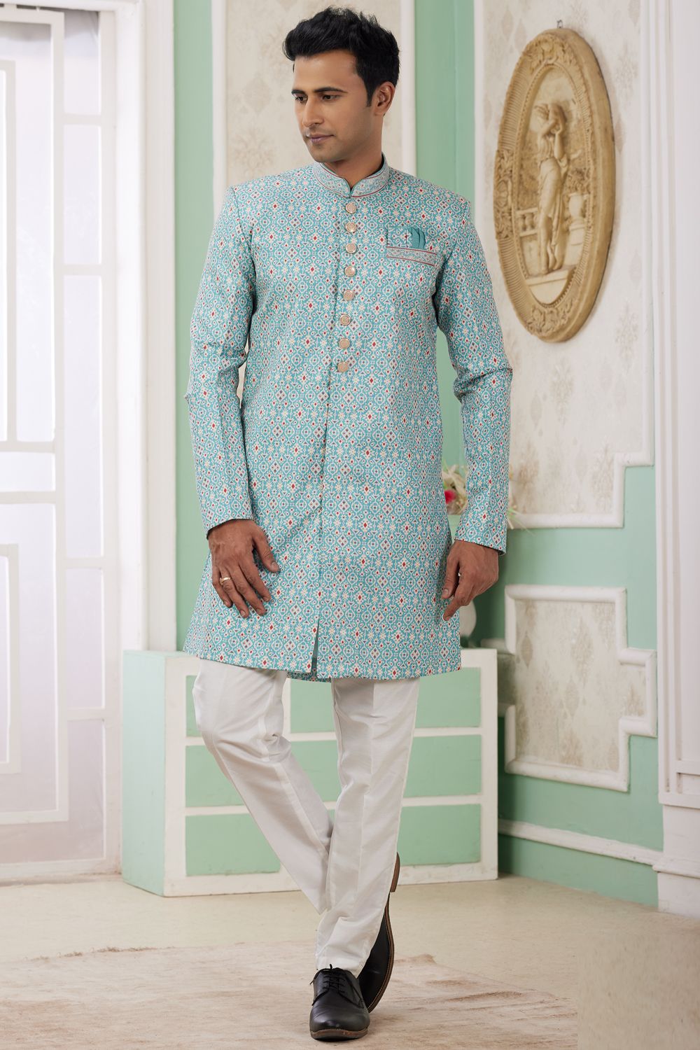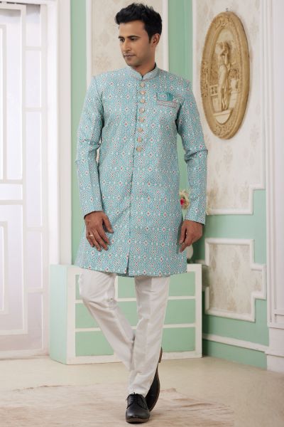 Blue Banarasi Jaquard Indo Western for Men (NMK-8593)