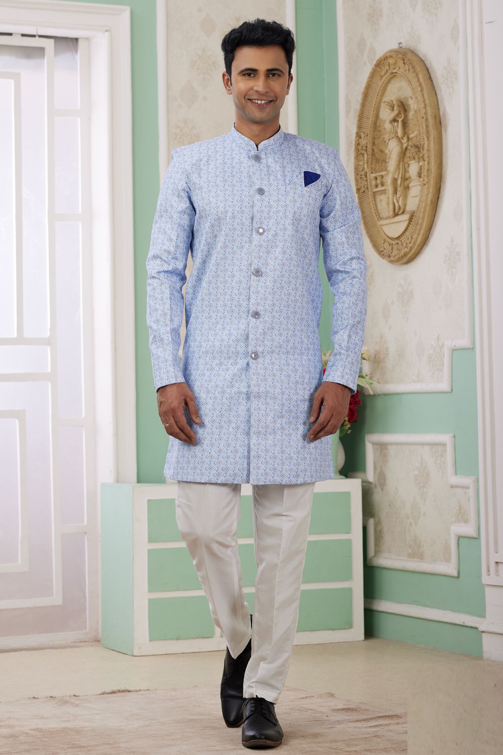 Blue Banarasi Jaquard Indo Western (NMK-8582)