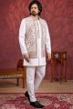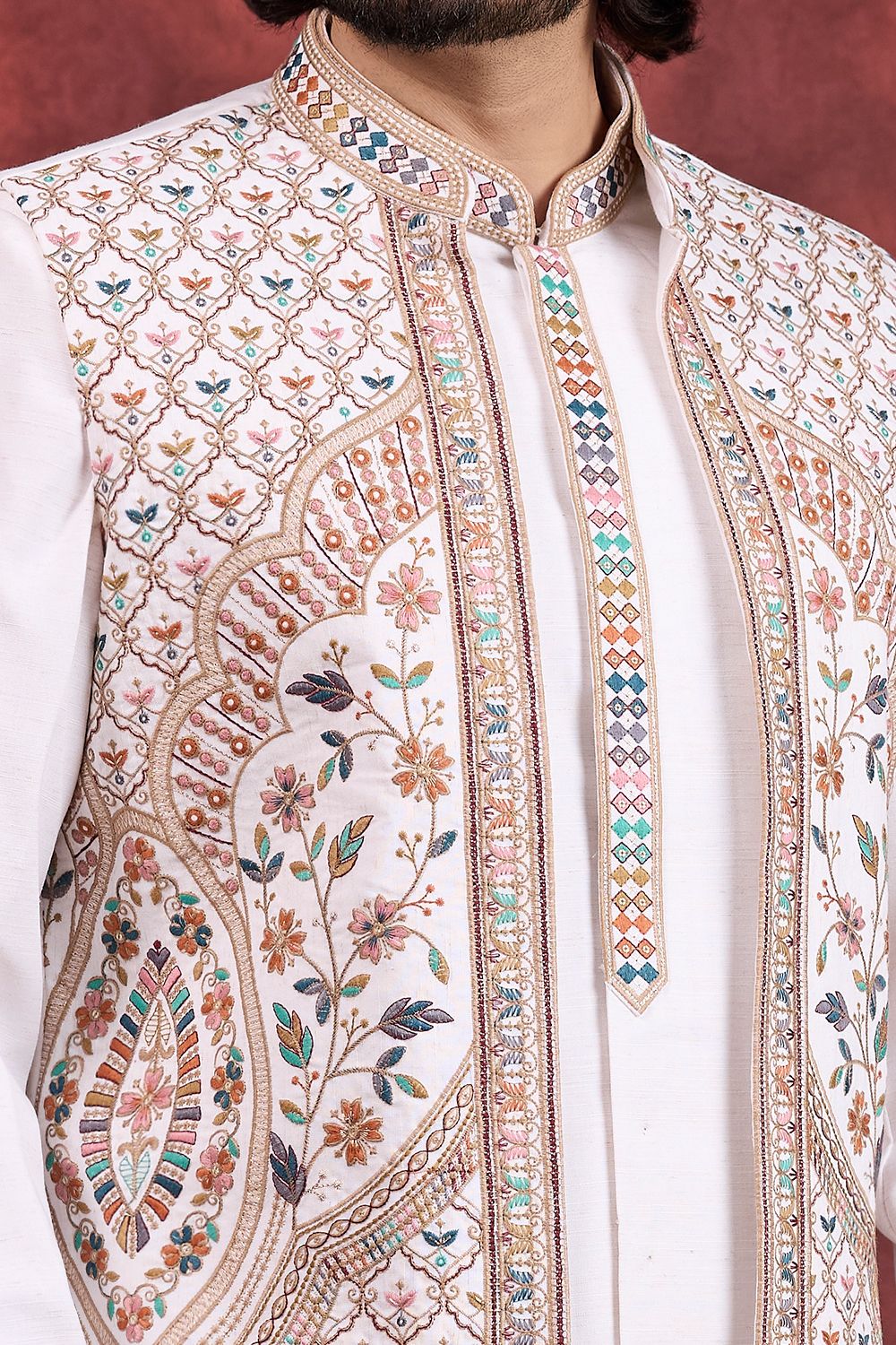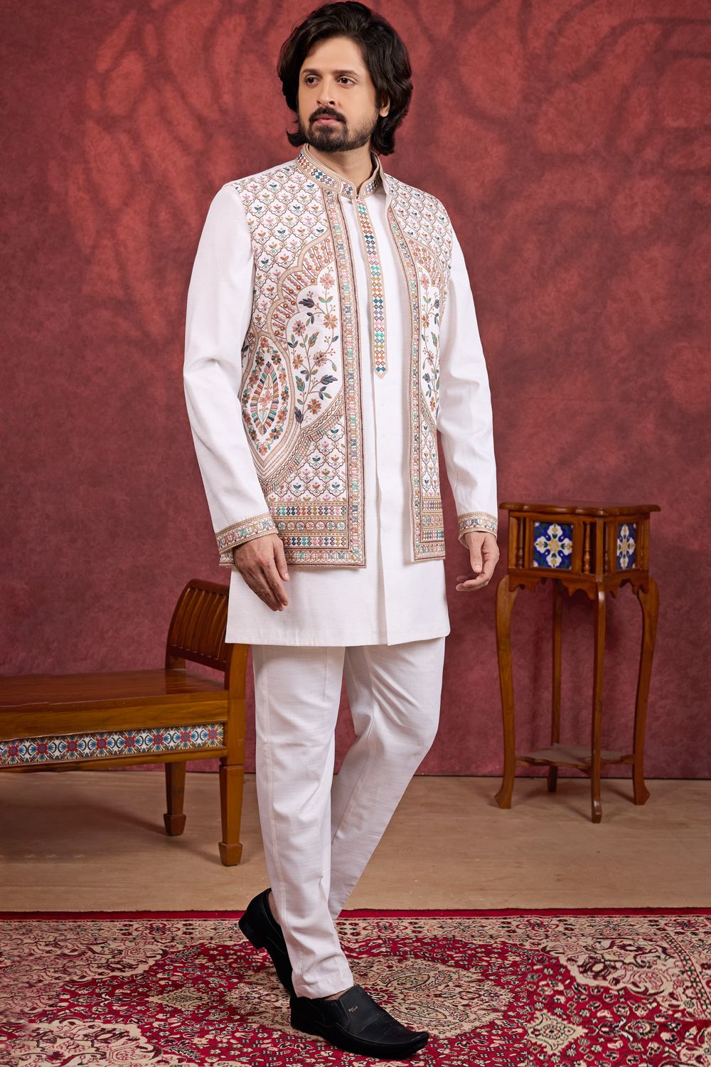 Cream Art Banarasi Silk Long Jacket Indo Western (NMK-8688)