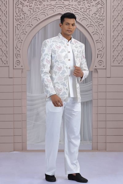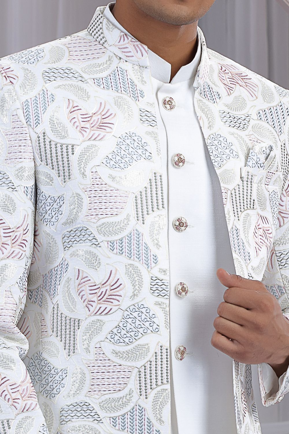 Cream Art Silk 3 piece Jacket Jodhpuri (NMK-8667)