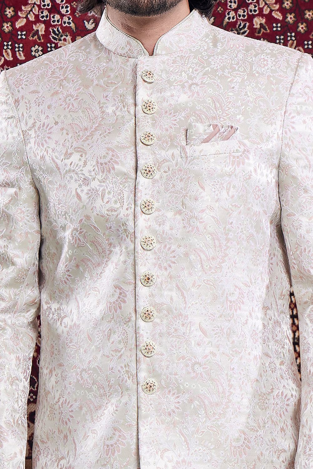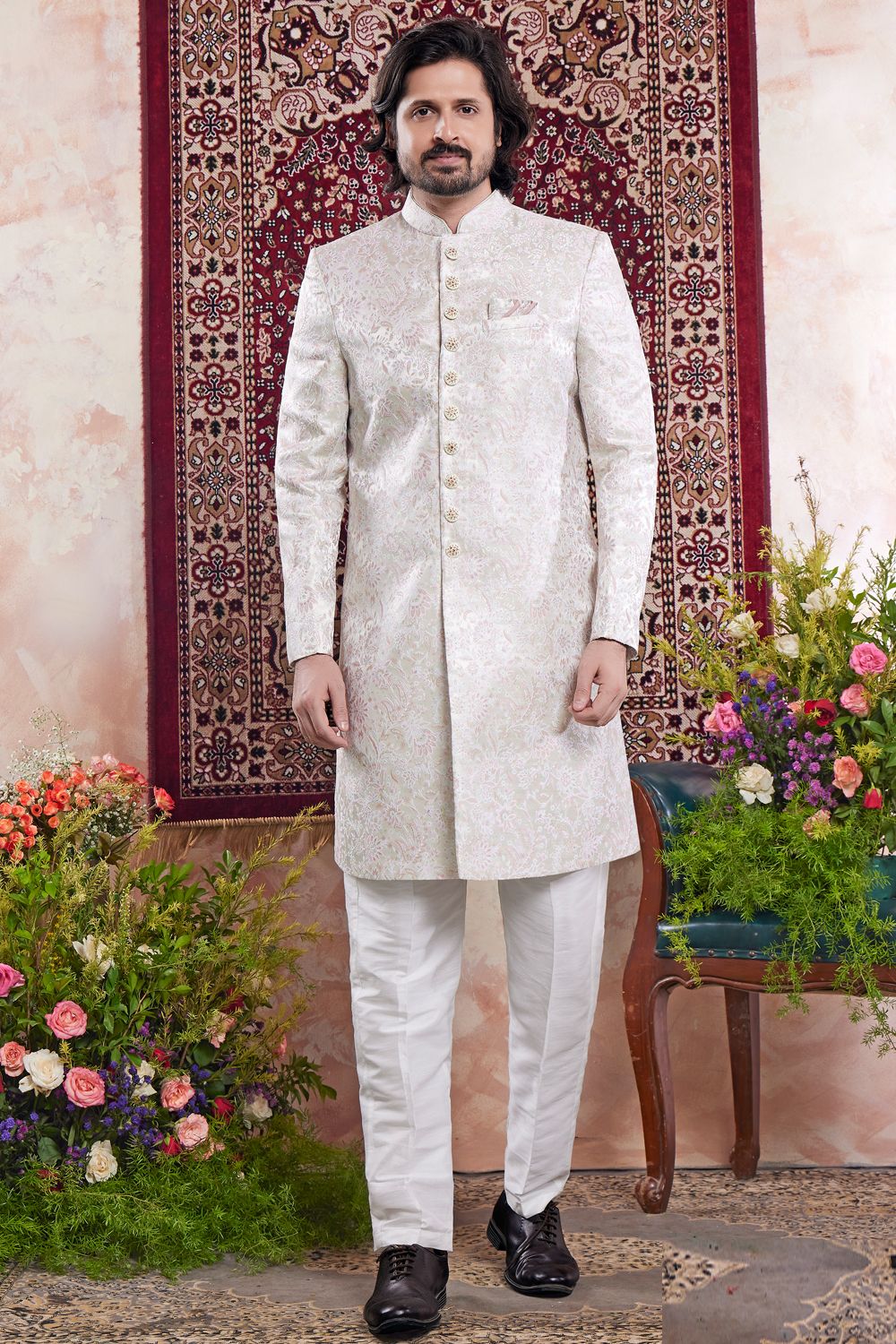 Cream Banarasi Jaquard Indo Western (NMK-8554)