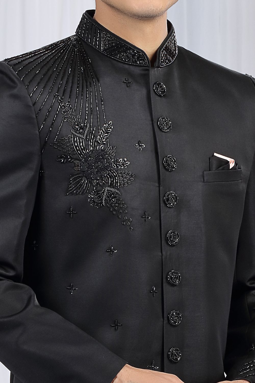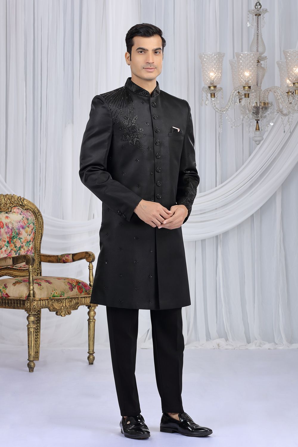 Embroidered Black Art Silk Indo Western (NMK-8682)