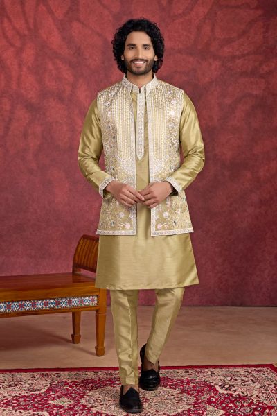 Green Art Banarasi Silk 3 piece Long Kurta Jacket (NMK-8697)