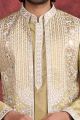 Green Art Banarasi Silk 3 piece Long Kurta Jacket is designed with thread embroidery work. Comes with a bottom. Actual product colors, patterns and designs may slightly vary.