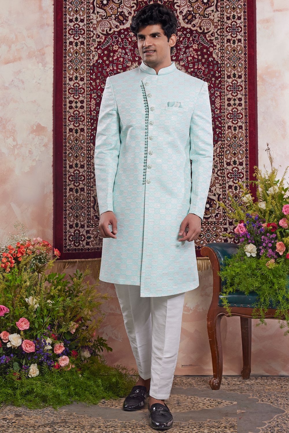Green Banarasi Jaquard Indo Western (NMK-8560)