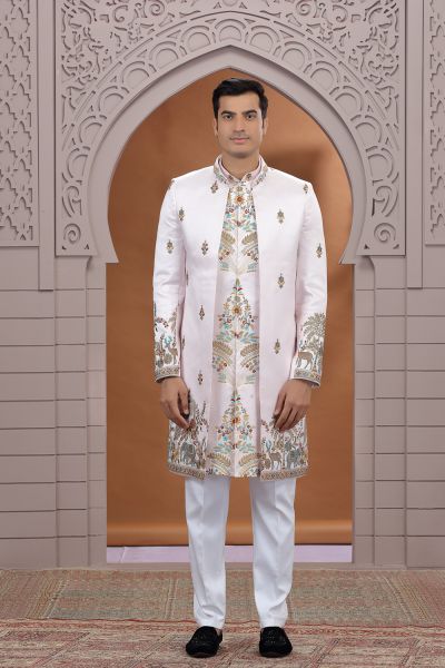 Light Pink Art Silk 3 piece Indo Western is designed with embroidery work. Comes with a bottom. Actual product colors, patterns and designs may slightly vary.