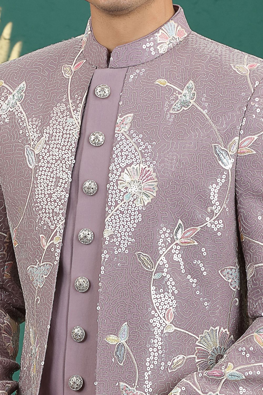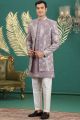 Light Purple Art Silk 3 piece Mens Indo Western (NMK-8645)