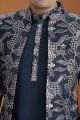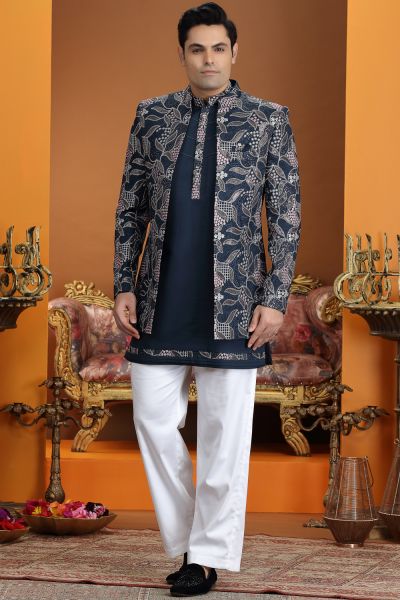 Navy Blue Art Silk 3 piece Indo Western (NMK-8638)