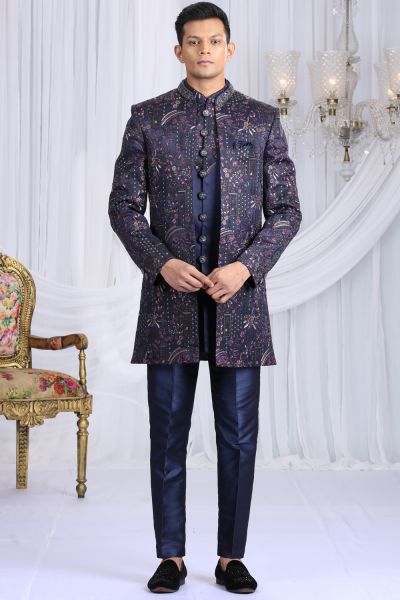 Navy Blue Art Silk 3 piece Indo Western (NMK-8657)