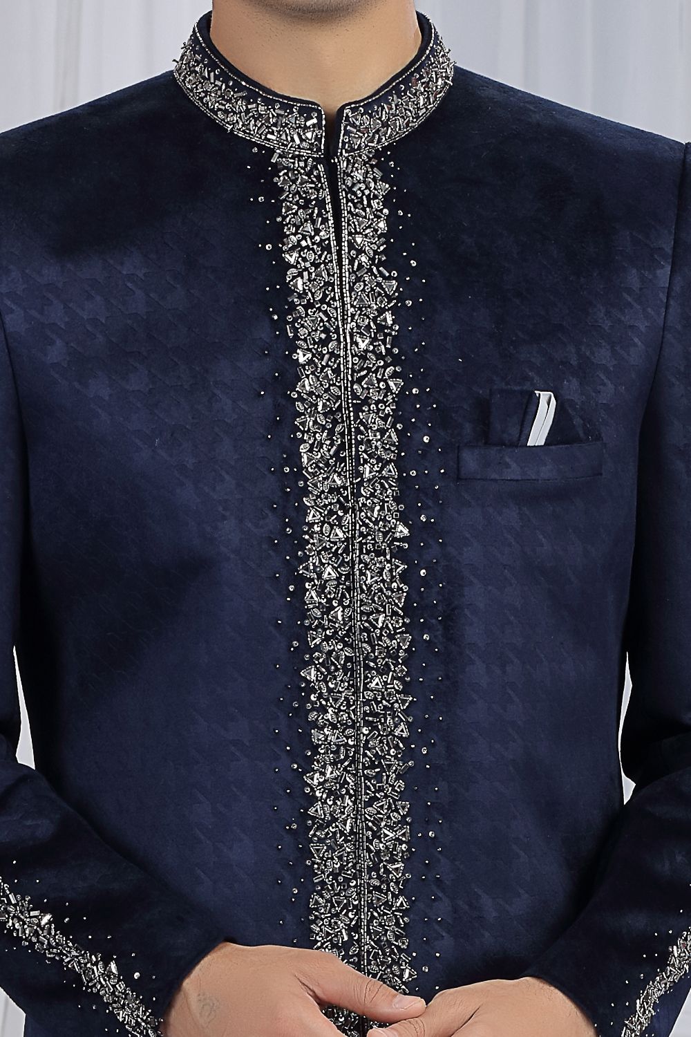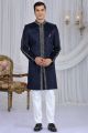 Navy Blue Embossed Velvet Indo Western (NMK-8687)