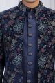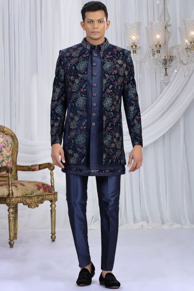 Navy Blue Velvet 3 piece Indo Western (NMK-8655)