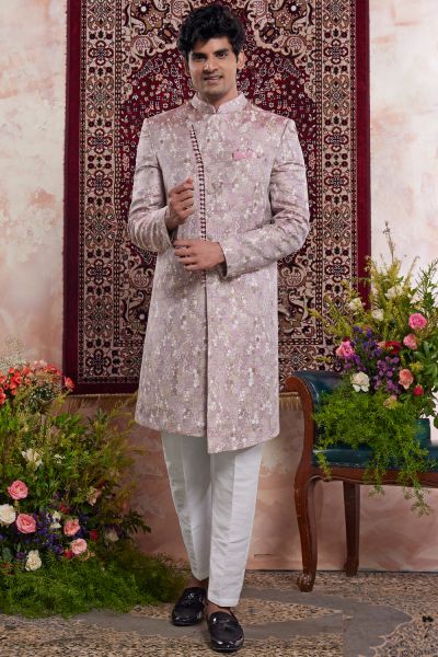 Onion Pink Banarasi Jaquard Indo Western (NMK-8553)