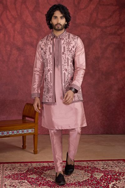 Pink Art Banarasi Silk 3 piece Long Kurta Jacket (NMK-8699)