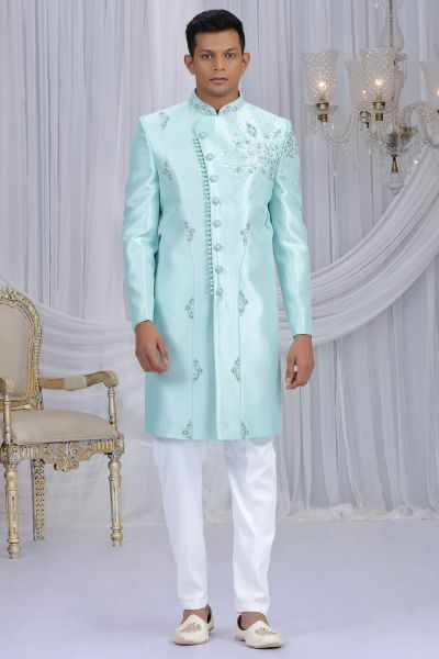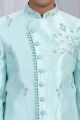 Pista Green Art Silk Indo Western is designed with embroidery work. Comes with a bottom. Actual product colors, patterns and designs may slightly vary.