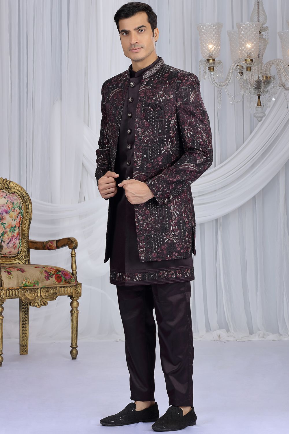 Wine Art Silk 3 piece Indo Western (NMK-8658)