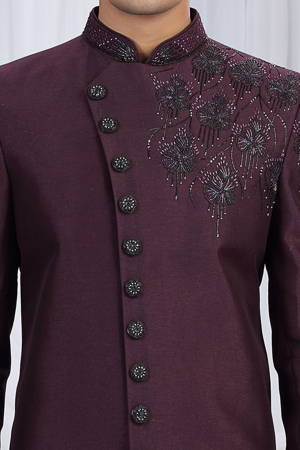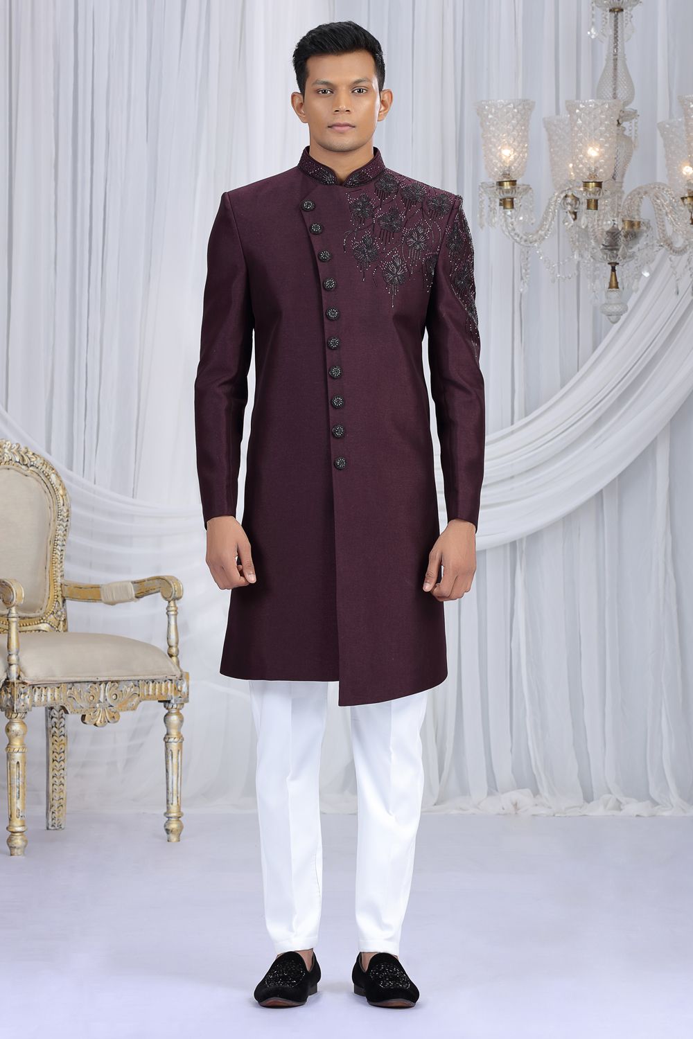 Wine Art Silk Indo Western is designed with embroidery work. Comes with a bottom. Actual product colors, patterns and designs may slightly vary.