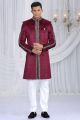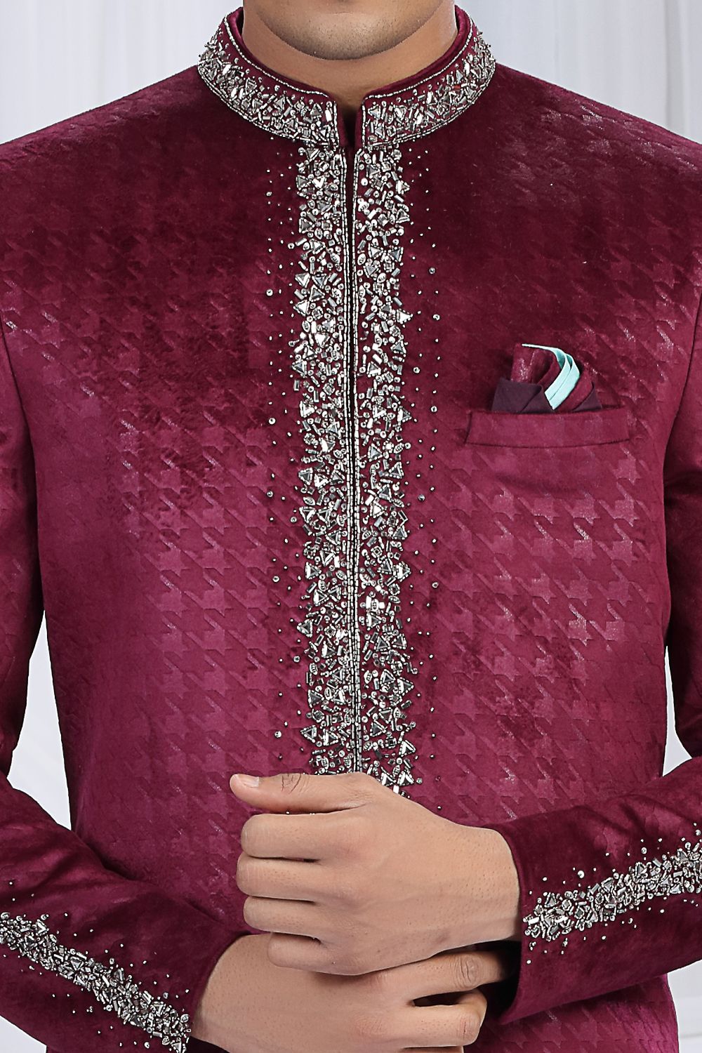 Wine Embossed Velvet Indo Western (NMK-8686)