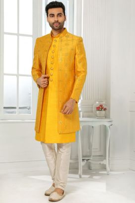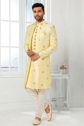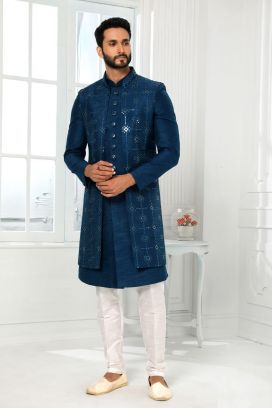 So, next time it’s your best friend’s wedding and you’re clueless about what to wear for different functions of a wedding including a cocktail party, sangeet ceremony, wedding and the reception party; fret not. Explore the majestic collection of Indian mens clothes online at Nihal Fashions. Ranging from sherwanis, kurta pajama, dhoti kurta to matching accessories, the collection is endless. The store also offers a dapper array of Indo-western suits to get you party-ready for all occasions.
