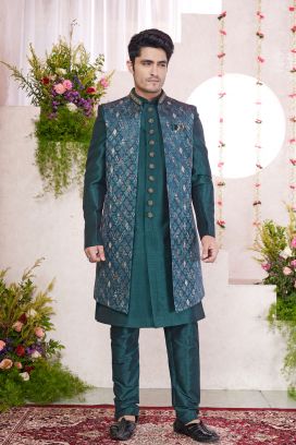 Indo-western suits convey an air of sophistication when attending formal dinners or galas. Their unique design elements set you apart from the conventional tuxedo-clad crowd. Elevate your presence and leave a lasting impression by selecting a well-fitted Indo-Western suit in a muted yet elegant color.