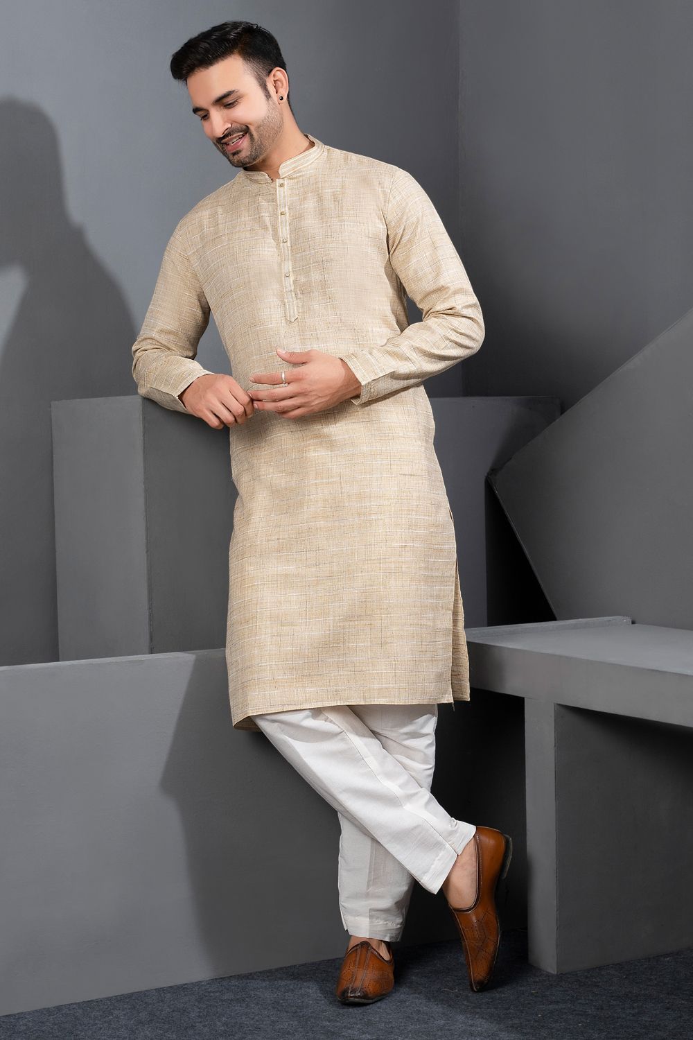 Beige Cotton Kurta Pajama For Men (NMK-8731)