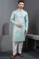 Blue Printed Cotton Silk Kurta Pajama (NMK-8725)