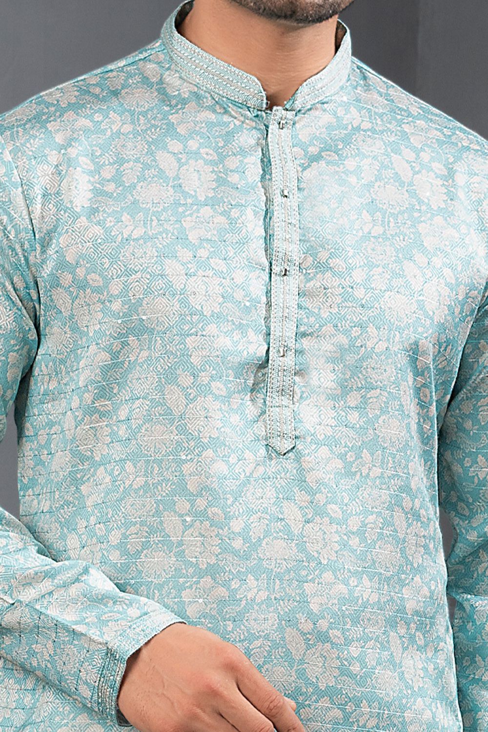 Description | Blue Printed Cotton Silk Kurta Pajama is designed with lace work. Comes with a bottom. Actual product colors, patterns and designs may slightly vary. |