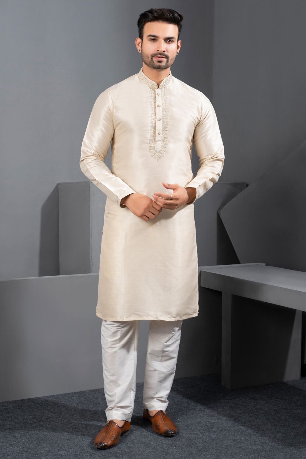 Cream Banglori Silk Kurta Pajama (NMK-8716)