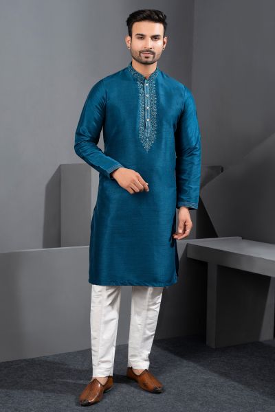 Dark Blue Banglori Silk Kurta Pajama (NMK-8728)