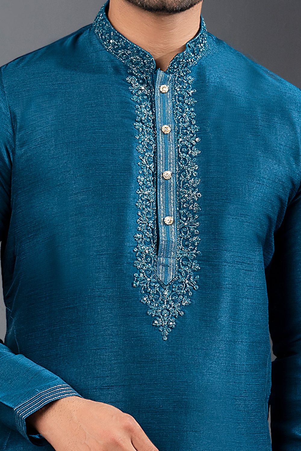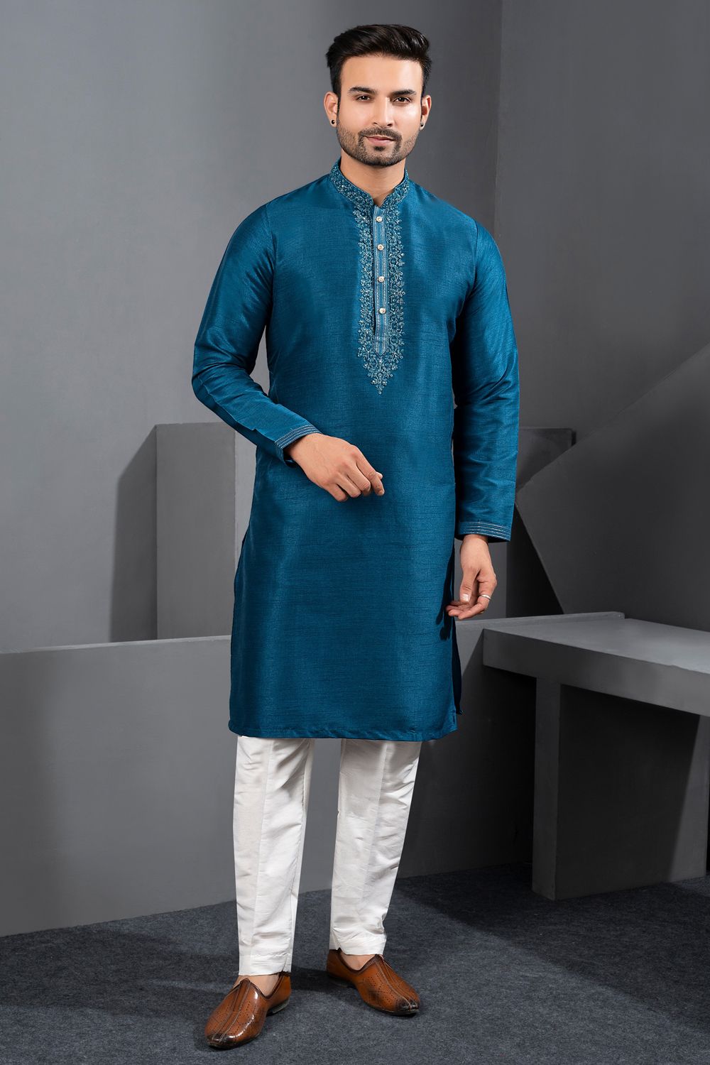 Description | Dark Blue Banglori Silk Kurta Pajama is designed with embroidery work. Comes with a bottom. Actual product colors, patterns and designs may slightly vary. |