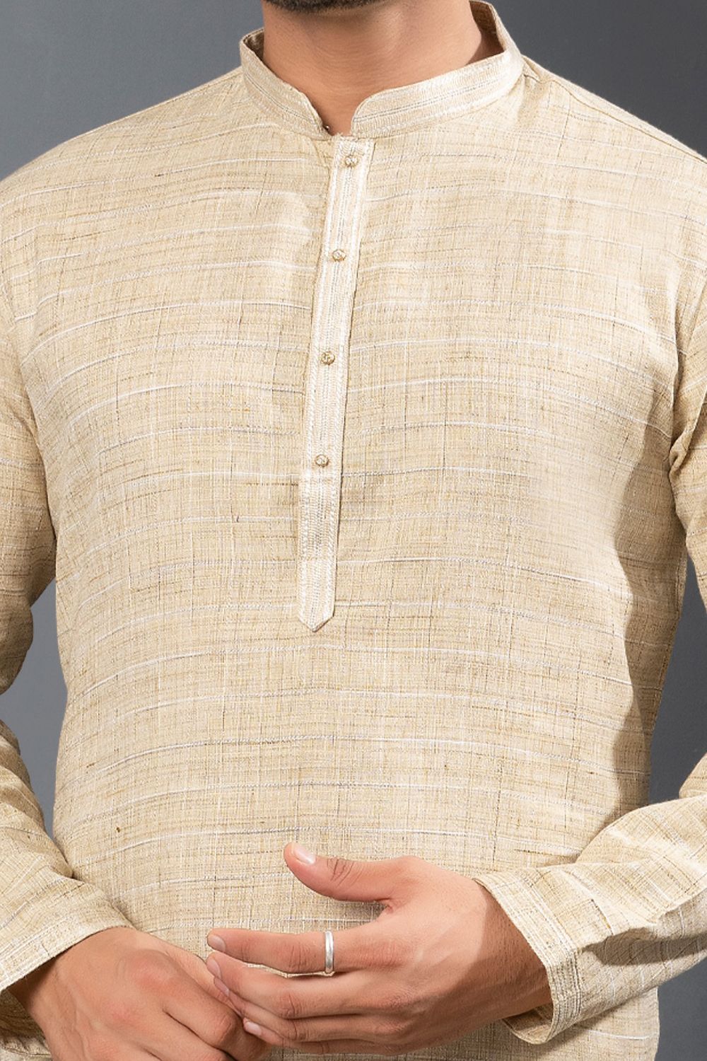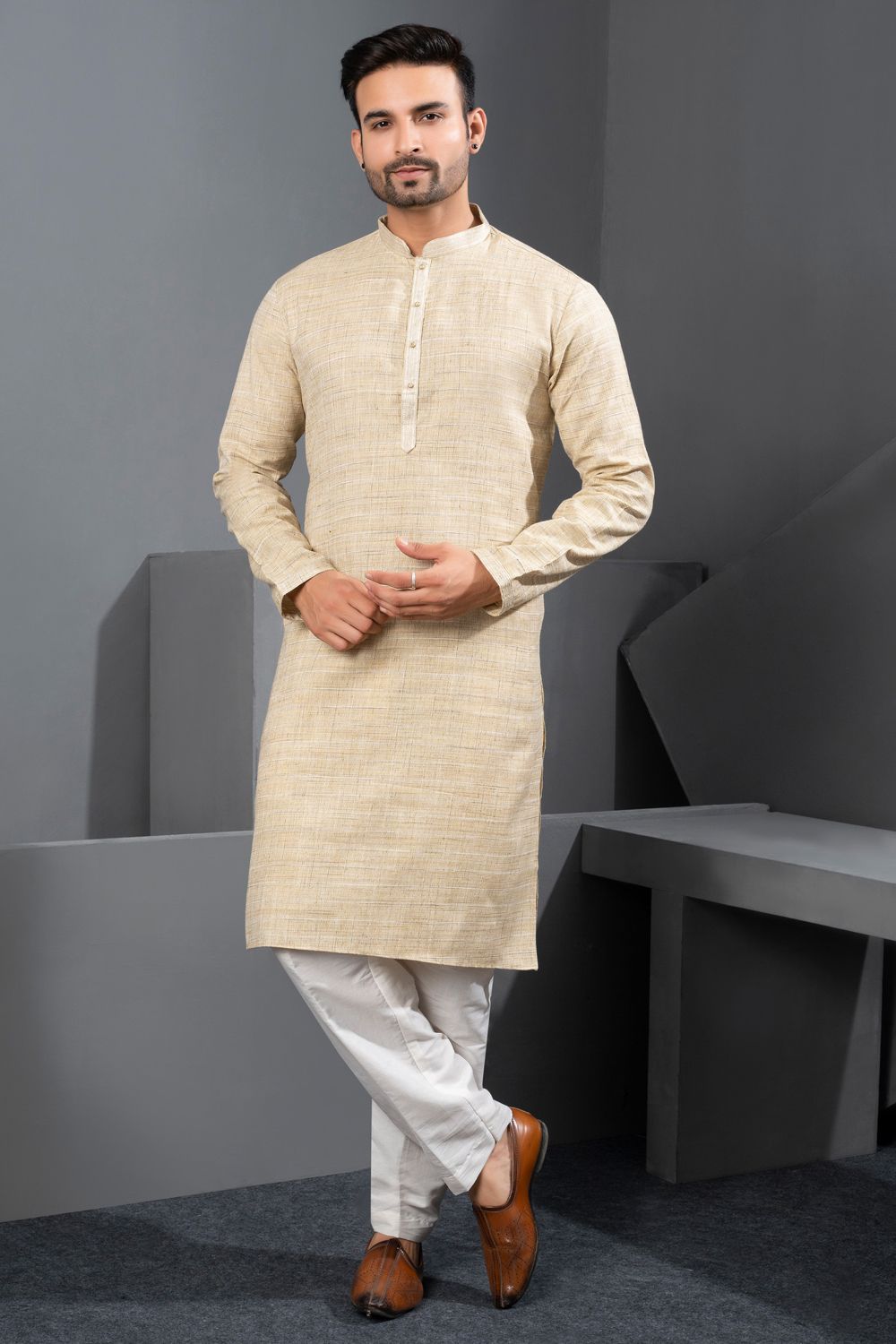 Description | Gold Cotton Kurta Pajama is designed with lace work. Comes with a bottom. Actual product colors, patterns and designs may slightly vary. |