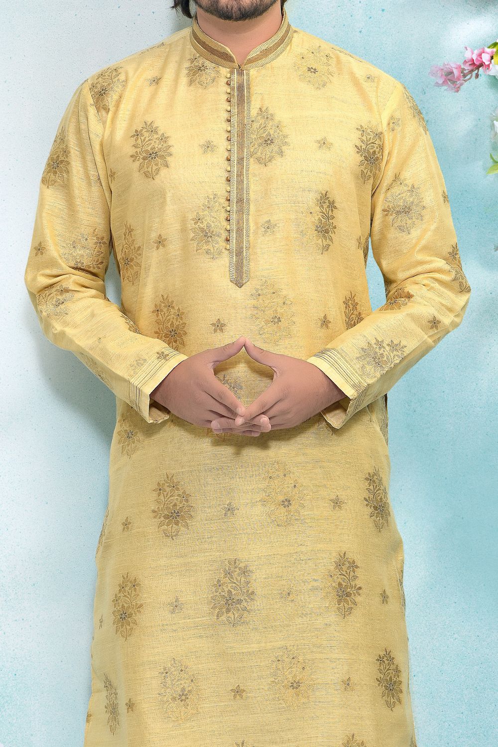 Gold Jaquard Silk Brocade Kurtas for Men (NMK-4889)
