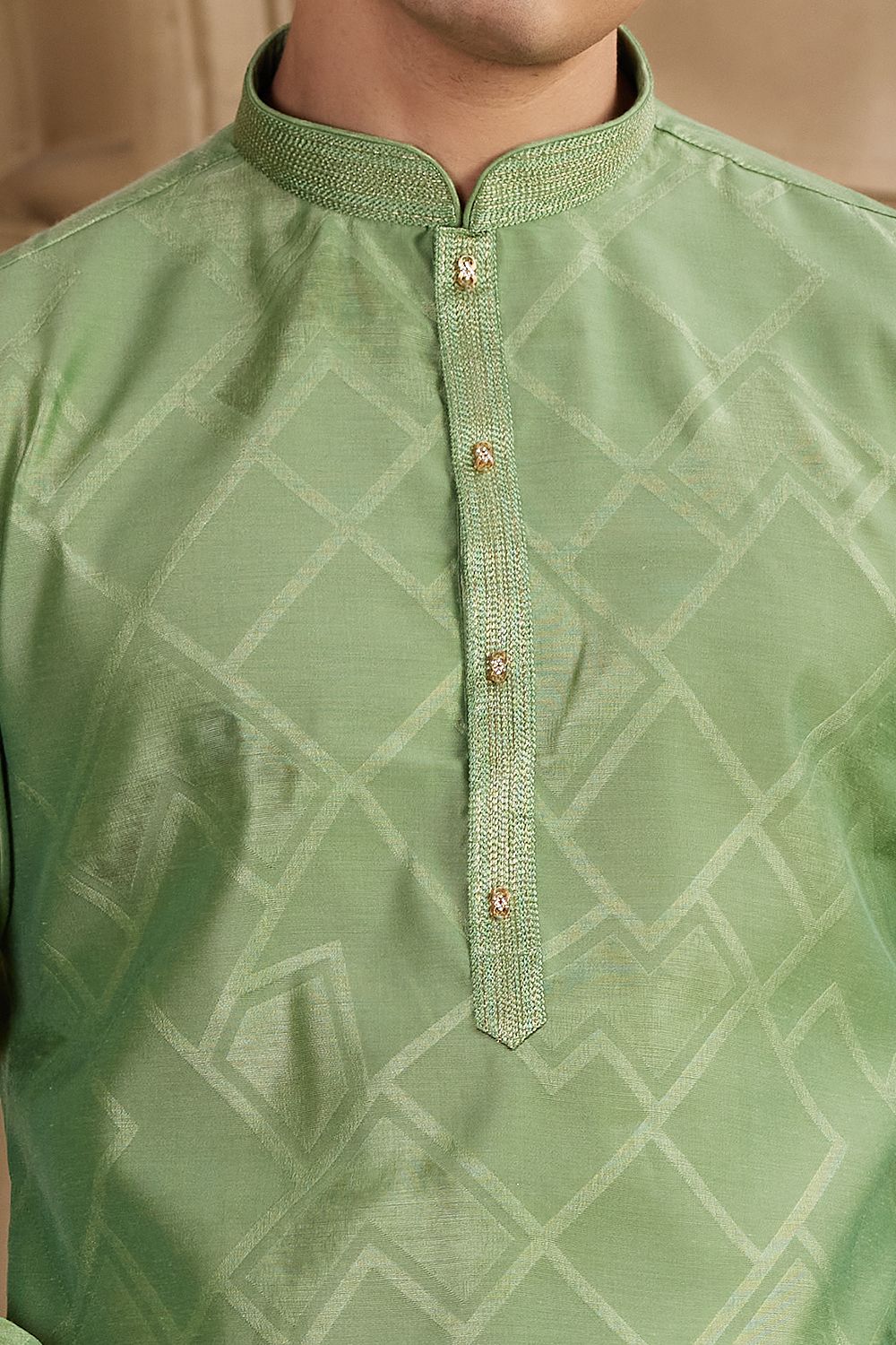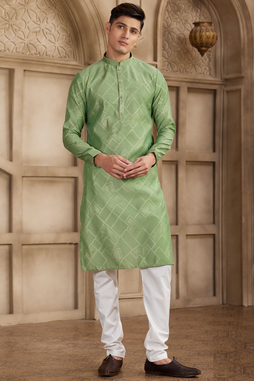 Description | Green Art Silk Kurta Pajama is designed with self brocade and pintux work. Comes with a bottom. Actual product colors, patterns and designs may slightly vary. |