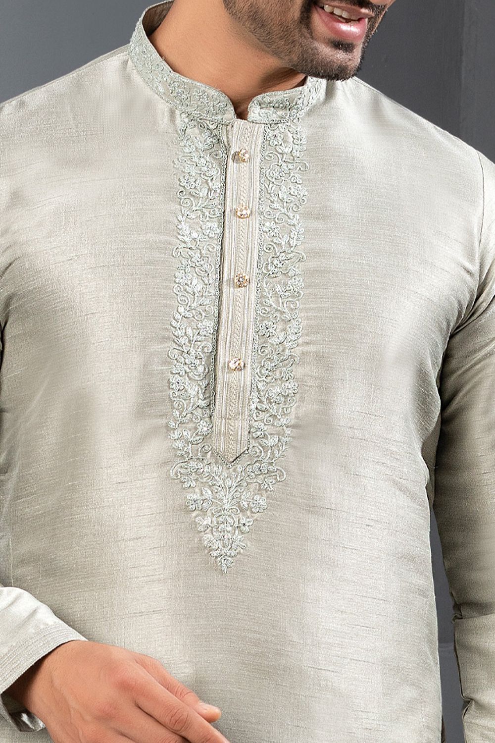 Description | Grey Banglori Silk Kurta Pajama is designed with embroidery work. Comes with a bottom. Actual product colors, patterns and designs may slightly vary. |