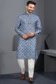 Grey Printed Cotton Silk Kurta Pajama (NMK-8762)