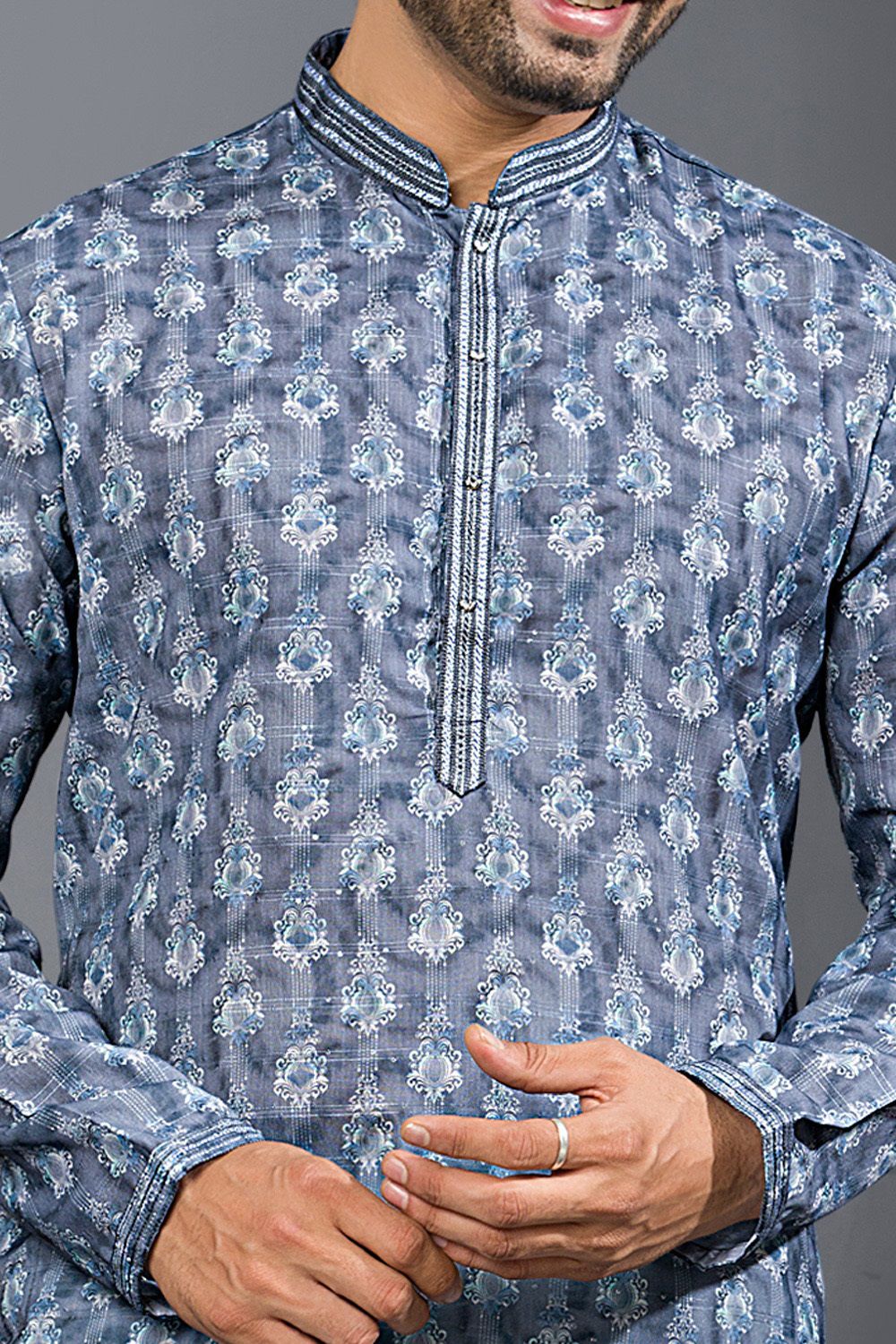 Description | Grey Printed Cotton Silk Kurta Pajama is designed with lace work. Comes with a bottom. Actual product colors, patterns and designs may slightly vary. |