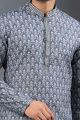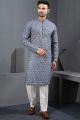 Grey Printed Cotton Silk Mens Kurta Pajama (NMK-8780)