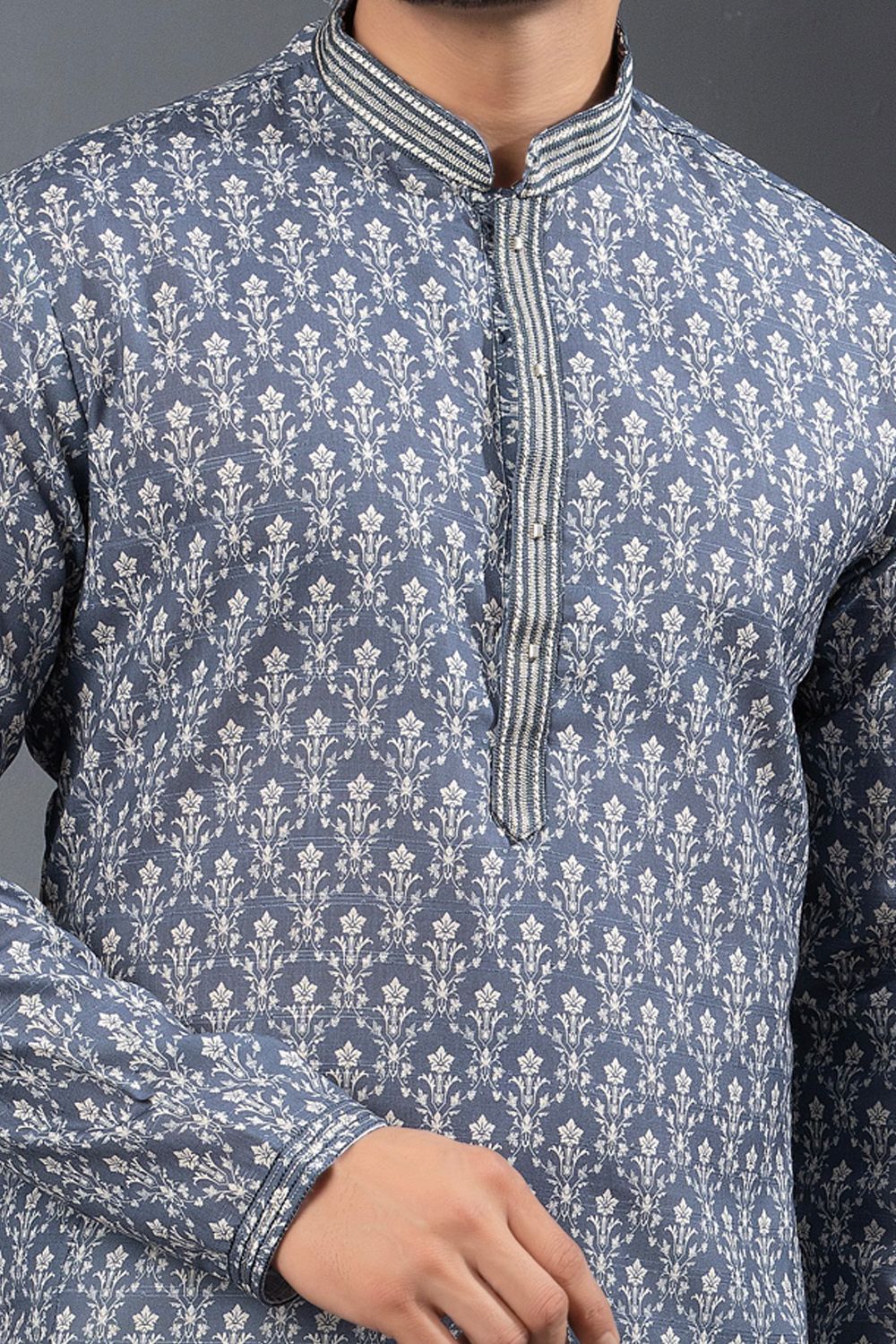 Description | Grey Printed Cotton Silk Kurta Pajama is designed with lace work. Comes with a bottom. Actual product colors, patterns and designs may slightly vary. |