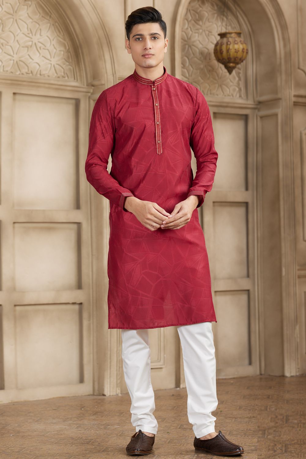 Description | Maroon Art Silk Kurta Pajama is designed with self brocade and pintux work. Comes with a bottom. Actual product colors, patterns and designs may slightly vary. |